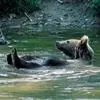 棕熊是熊科熊属哺乳动物。体形健硕,肩背隆起,身后长有一条短尾。毛色多为棕褐色或棕黄色;老年呈银灰色;幼年为棕黑色。野生条件下寿命为20—30年。棕熊分布广泛,主要分布在欧亚大陆和北美,…全部>>