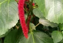 红穗铁苋菜:为大戟科、铁苋菜属植物,灌木,高0.5-3米。嫩枝被灰色短绒毛,毛逐渐脱落,小枝无毛。 花序色泽鲜艳,葇荑花序下垂,如狐狸尾状,雌花近卵形,长约0.8毫米,顶端急尖,具短毛;子房近球形,…全部>>