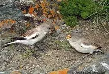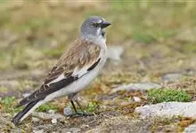 白斑翅雪雀:属典型的高原鸟类,共有7个亚种,体重30-34克,体长142-169毫米,较雪雀属中其他种体型稍大;雄鸟头灰,颏黑,翕和肩富于褐色;翼大部白色;除一对中央尾羽黑色外其余均为白色而具黑色羽端,…全部>>