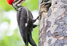 白腹黑啄木鸟,是啄木鸟科、黑啄木鸟属的中型鸟类,体长43-46厘米,头顶具长的红色羽冠,颚纹亦为红色,其余头、颈、胸和上体黑色,腰和腹白色,飞翔时白色腋羽和翅下覆羽亦明显可见。雌鸟头顶黑色,…全部>>