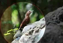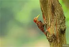 栗啄木鸟:是一种红褐色啄木鸟,体长21厘米。雄性成鸟整个头棕色,但稍淡;眼下有一宽阔血红色纵纹;翕部深棕色,背、腰、尾上覆羽、尾羽也是深棕色;除尾羽外,各羽均具黑色横斑;尾羽则具黑色点斑;翼也是深棕色,…全部>>
