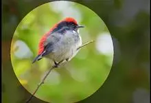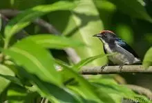 朱背啄花鸟:体重6-8克,体长81-97毫米。是一种小型的黑色及红色啄花鸟。雄鸟顶冠、背及腰猩红色,两翼、头侧及尾黑,两胁灰,下体余部白色。雌鸟上体橄榄色,腰及尾上覆羽猩红,尾黑。亚成鸟清灰色,嘴橘黄,…全部>>