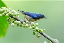 黄腹啄花鸟:体重11-16克,体长104-117毫米。是一种体型大,下腹部为艳黄色的啄花鸟,雄鸟特征为头黑色,喉部有白色纵斑、喉侧及上体成对比,两翅和尾黑色,外侧尾羽内翈具白色斑块。其余下体淡黄色。…全部>>