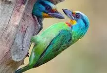蓝喉拟啄木鸟,是须鴷科、拟啄木鸟属的鸟类。蓝喉拟啄木鸟为小型鸟类,体长20-23厘米。前额至头顶鲜红色,其上有一宽阔的黑色横带,将此红色分为前后二块;头侧、颏、喉蓝色,下喉两侧各具一红色点斑。…全部>>
