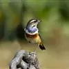 蓝点颏亦称“蓝喉歌鸲”,通称蓝靛颏儿。身体大小和麻雀相似,体长12-13厘米,体重17-18克。头部、上体主要为土褐色。眉纹白色。尾羽黑褐色,基部栗红色。颏部、喉部辉蓝色,下面有黑色横纹。下体白色。…全部>>