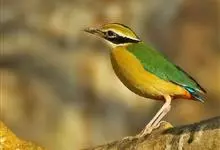 蓝翅八色鸫是雀形目八色鸫科的鸟类。体长17-20厘米,体重类约48-70克,体型圆胖,尾短,腿长,以身体具有红、绿、蓝、白、黑、黄、褐、栗等鲜艳夺目,丰富艳丽的色彩而得名,是很有观赏价值的鸟类。主要…全部>>