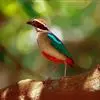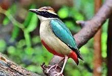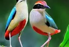 蓝翅八色鸫是雀形目八色鸫科的鸟类。体长17-20厘米,体重类约48-70克,体型圆胖,尾短,腿长,以身体具有红、绿、蓝、白、黑、黄、褐、栗等鲜艳夺目,丰富艳丽的色彩而得名,是很有观赏价值的鸟类。主要…全部>>