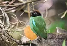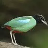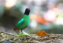 绿胸八色鸫:是雀形目八色鸫科的鸟类,共有12个亚种。体长为16-18厘米,体重65-69克。体型圆胖,尾短,腿长。头黑,上体绿色,两翼深色而具白色斑纹,头顶至后枕深褐,胸及腹部苹果绿,臀亮红。…全部>>