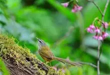 栗头地莺:小型鸣禽。体长约10厘米。体型纤细,是中国体型最小的鸟类之一;喙细尖,上喙先端多有缺刻;翅短圆;尾短至中等;腿短而细。羽色以灰、褐及橄榄绿为主,雌雄羽色相似。栖息于灌木或稀疏林内,…全部>>