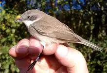 白喉林莺:体长10-13厘米,是一种类体型略小的莺鸟。喉白,上体灰褐或沙褐色,头顶较灰,贯眼纹黑褐或暗褐色。下体污白。耳羽深黑灰,胸侧及两胁沾皮黄色、褐色或淡粉红色。外侧尾羽羽缘白色。…全部>>