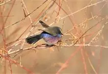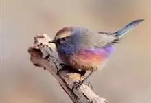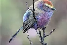 花彩雀莺:体长9-12厘米,是一种毛茸茸偏紫色的雀莺。顶冠棕色,眉纹白。尾长,羽毛松软。前额有一宽阔的眉纹淡黄色,头顶栗色或棕红色,有的具紫蓝色光泽。背灰色,腰和尾上覆羽辉紫蓝色,飞羽灰褐色。…全部>>