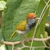 普通缝叶莺,是雀形目鹅科莺亚科缝叶莺属一种。体长10-14厘米,体重7-10克,雄鸟前额棕红,头顶至枕棕橄榄褐,上体橄榄绿染黄,飞羽及尾羽暗褐;繁殖期雄鸟的中央尾羽特形延长,下体淡皮黄白色。…全部>>