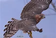 褐耳鹰的体形比苍鹰要小得多,为小型猛禽,体长为31-44厘米,体重217-325克。上体灰色,下体具赤褐色横斑。第6枚初级飞羽外羽片无缺刻,次外侧的4对尾羽具5道黑褐色横斑。眼先具白色短羽。…全部>>