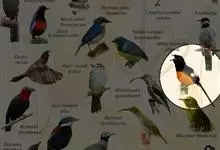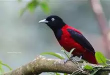 朱鹂:中等鸟类,体长23-28厘米。雄鸟绛紫红色,头、上胸及翼黑色。雌鸟上背及背部深灰色,尾覆羽及尾绛紫红色,腹部及下胸白而密布黑色纵纹。与鹊色鹂幼鸟的区别在上背灰色较深,下体白色较少且纵纹较粗。…全部>>