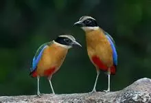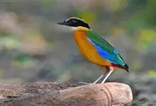 蓝翅八色鸫是雀形目八色鸫科的鸟类。体长17-20厘米,体重类约48-70克,体型圆胖,尾短,腿长,以身体具有红、绿、蓝、白、黑、黄、褐、栗等鲜艳夺目,丰富艳丽的色彩而得名,是很有观赏价值的鸟类。主要…全部>>
