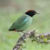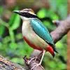 绿胸八色鸫:是雀形目八色鸫科的鸟类,共有12个亚种。体长为16-18厘米,体重65-69克。体型圆胖,尾短,腿长。头黑,上体绿色,两翼深色而具白色斑纹,头顶至后枕深褐,胸及腹部苹果绿,臀亮红。…全部>>
