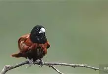 栗腹文鸟:小型鸟类,体长10-12厘米。嘴蓝灰色,基部粗厚,先端尖、呈圆锥状, 脚亦为蓝灰色,整个头、颈和上胸黑色,其余体羽栗色,或下胸和腹中央至尾下覆羽黑色。尾栗红色。全部>>