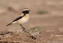 漠䳭是鹟科、䳭属小型鸟类,体长14-17厘米。雄鸟上体沙棕色,腰和尾上覆羽白色,两翅和尾黑色,尾基部白色,眼纹白色,眉纹以下整个脸和头侧以及颏、喉黑色,其余下体白色。雌鸟和雄鸟大致相似,但颏、喉白色,…全部>>