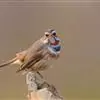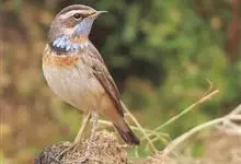 蓝点颏亦称“蓝喉歌鸲”,通称蓝靛颏儿。身体大小和麻雀相似,体长12-13厘米,体重17-18克。头部、上体主要为土褐色。眉纹白色。尾羽黑褐色,基部栗红色。颏部、喉部辉蓝色,下面有黑色横纹。下体白色。…全部>>