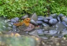 日本歌鸲:体型小似麻雀,但羽毛颜色较为美丽。嘴细长,嘴须不发达;翅短圆,上体草黄褐;雄鸟喉部橙棕色,十分明显,雌鸟却转为淡橙黄色。第一枚初级飞羽短狭;尾长约为跗蹠长度的二倍;跗蹠黑褐色,形粗长而健。…全部>>