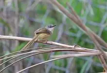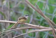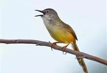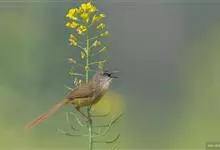 黄腹鹪莺:体长13厘米,是一种体型略大而尾长的橄榄绿色鹪莺。喉及胸白色,以下胸及腹部黄色为其特征。头灰,有时具浅淡近白的短眉纹;上体橄榄绿色;腿部皮黄或棕色。换羽导致羽色有异。繁殖期尾较短,…全部>>