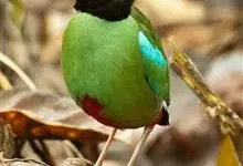 绿胸八色鸫:是雀形目八色鸫科的鸟类,共有12个亚种。体长为16-18厘米,体重65-69克。体型圆胖,尾短,腿长。头黑,上体绿色,两翼深色而具白色斑纹,头顶至后枕深褐,胸及腹部苹果绿,臀亮红。…全部>>