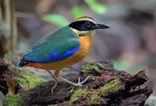 蓝翅八色鸫是雀形目八色鸫科的鸟类。体长17-20厘米,体重类约48-70克,体型圆胖,尾短,腿长,以身体具有红、绿、蓝、白、黑、黄、褐、栗等鲜艳夺目,丰富艳丽的色彩而得名,是很有观赏价值的鸟类。主要…全部>>