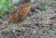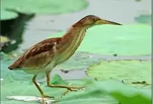 紫背苇鳽是鹭科、苇鳽属动物,为涉禽,体长约33厘米。头顶黑色,后头至尾上覆羽暗栗褐色;翅上覆羽橄榄黄色;下体浅棕黄色。多生活于水库和山脚边的稻田、芦苇丛、滩涂及沼泽草地,在西藏见于海拔2300米的农田,…全部>>