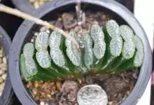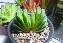 白银寿Haworthia emelyae var.emelyae Poelln.,中文惯称白银寿,是小型多肉植物,原产于南非开普省。肉质叶呈莲座状排列,叶色深绿或红褐色,顶端二角形,稍凸起,透明,…全部>>