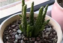 筒叶花月,是景天科青锁龙属的多年生草本植物。植株多分株,灌木状,茎较粗壮,圆柱形,表皮灰褐色;叶片肉质,互生,呈圆筒状,簇生于茎或分枝顶端,叶端呈斜截形,截面为椭圆形;花呈星状,淡白色;花期秋季。…全部>>