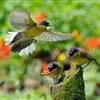 黄喉噪鹛体型略小,顶冠蓝灰色,特征为具黑色的眼罩和鲜黄色的喉。上体褐色,尾端黑色而具白色边缘,腹部及尾下覆羽皮黄色而渐变成白色。黄喉噪鹛隐匿于亚热带常绿林和浓密灌丛,于地面杂物中取食,喜食昆虫,…全部>>