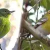 林柳莺:体长约11厘米,是一种体型小的黄绿色柳莺。两性相似。上体除两翅和尾羽暗褐色外,余均呈黄绿色;眉纹自嘴基伸向颈后,呈黄色;贯眼纹短,呈暗褐色;脸颊、颏、喉、胸呈黄色,但胸部色淡,腹部为丝光白色。…全部>>