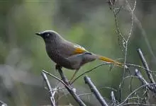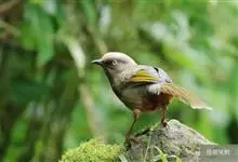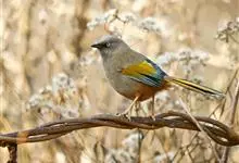 橙翅噪鹛:是噪鹛科、彩翼噪鹛属的中型鸟类,体长22-25厘米。头顶深葡萄灰色或沙褐色。上体灰橄榄褐色,外侧飞羽外翈蓝灰色、基部橙黄色,中央尾羽灰褐色,外侧尾羽外翈绿色而缘以橙黄色并具白色端斑。…全部>>