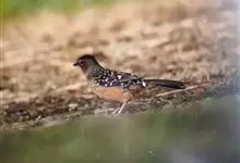 大噪鹛:中型鸟类,体长32-36厘米。额至头顶黑褐色,背栗褐色满杂以白色斑点,斑点前缘或四周还围有黑色。初级覆羽、大覆羽和初级飞羽具白色端斑。尾特长,均具黑色亚端斑和白色端斑。颏、喉棕褐色,…全部>>