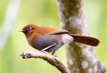 白颊噪鹛是雀形目噪鹛科噪鹛属鸟类,又称土画眉、小画眉、小噪鹃。成鸟额至头顶栗褐色,长眉纹、眼先和颊纹棕白色,眼后至耳羽深褐色,…全部>>