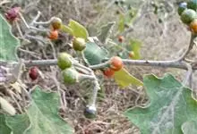 刺天茄,是茄科茄属的多年生草本植物。茎直立,枝条有刺;叶片大,互生,卵形或椭圆形,有长柄,叶面有短柔毛;花单生于枝顶,外面密被星状绒毛及细直刺,果被星状毛及直刺,浆果球形,光亮,…全部>>