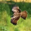 黑鸢:是鹰科、鸢属的一种中型猛禽,共有5个亚种。体长54-69厘米。上体暗褐色,下体棕褐色,均具黑褐色羽干纹,尾较长,呈叉状,具宽度相等的黑色和褐色相间排列的横斑;飞翔时翼下左右各有一块大的白斑。…全部>>