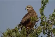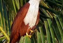 栗鸢:又叫红老鹰,为中型猛禽。体长36-51厘米。虹膜为褐色或红褐色,头、颈、胸和上背白色,其余体羽和翅膀均为栗色。主要栖息于江河、湖泊、水塘、沼泽、沿海海岸和邻近的城镇与村庄。…全部>>