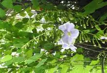 桂叶山牵牛是爵床科山牵牛属高大藤本,枝叶无毛。茎枝近4棱形,具沟状凸起。叶具叶柄,长可达3厘米,上面的小叶近无柄,具沟状凸起。…全部>>