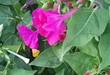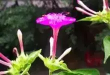 紫茉莉,别名晚饭花、晚晚花、野丁香、苦丁香等,为紫茉莉科紫茉莉属的一年生草本植物。其根肥粗,倒圆锥形,黑色或黑褐色;茎直立,圆柱形;叶片卵形或卵状三角形;花常数朵簇生枝端;总苞钟形,…全部>>