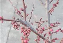 美人梅是蔷薇科李属的落叶小乔木。叶互生,呈广卵形或卵形,紫红色;花呈淡紫红色,半重瓣或重瓣,花叶同放,繁密有香味;果实呈球形,呈鲜红色;花期3-4月;果期5-6月。美人梅原产于美国,…全部>>