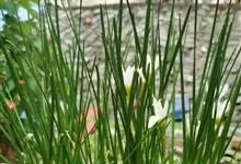 葱莲 Herb.)是石蒜科葱莲属植物。又名玉帘、葱兰等,多年生草本植物,鳞茎卵形,直径约2.5厘米,具有明显的颈部,颈长2.5-5厘米。叶狭线形,肥厚,亮绿色,长20-30厘米,宽 2-4毫米。…全部>>