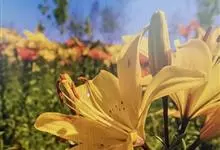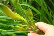 黄花菜 别名金针菜、柠檬萱草等,是阿福花科萱草属的多年生宿根性草本植物。根近肉质,中下部常有纺锤状膨大;叶7~20枚,长50~130cm,宽6~25mm;花葶长短不一,花梗较短,花多朵,…全部>>