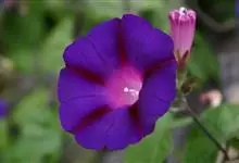 五爪金龙 Sweet),旋花科番薯属多年生缠绕草本植物。茎细长,有细棱;叶片为掌状;花冠紫红色、紫色或淡红色、偶有白色,漏斗状;蒴果近球形。花期5~12月。五爪金龙的叶子类似掌状,有5至7个裂痕,…全部>>
