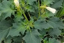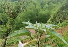 洋金花是茄科曼陀罗属植物,一年生草本植物,全株近于无毛。茎直立,圆柱形,高30~100cm,基部木质化,上部呈义状分枝。叶互生,上部的叶近于对生;叶柄长2~6cm,表面被疏短毛;叶片卵形、长卵形或心形,…全部>>
