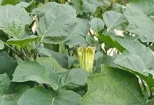 曼陀罗,茄科曼陀罗属一年生大型草本植物,全株光滑。有臭气;叶呈广卯形,边缘具不规则波状浅齿裂;花单生于枝杖间或叶腋,直立,有短梗;花萼是筒状裂片三角形,颜色为白色或淡紫色;果实为蒴果卵状,…全部>>