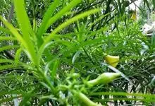 黄花夹竹桃K. Schum.),又名“酒杯花”“柳木子”“黄花状元竹”,是夹竹桃科,黄花夹竹桃属下的常绿乔木植物。高达5m,全株无毛,树皮棕褐色;叶互生,近革质,线形或线状披针形;花大,黄色,具香味,…全部>>