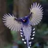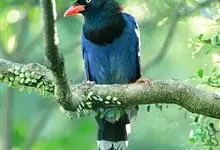 台湾蓝鹊:体长64至65厘米,翼展18至21厘米,尾长约40厘米,尾羽长占了总体长的三分之二。头、脸、颈、喉、胸都是黑色,黄色的眼珠包围黑色的瞳孔,鲜红色的鸟喙、双脚,…全部>>