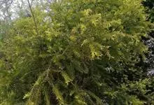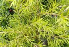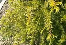 千层金是桃金娘科白千层属植物,常绿乔木。树高可达6-8米,冠幅锥形。主干直立,枝条密集、细长、柔软,嫩枝红色。叶片金黄色,披针形,长2-2.5米,宽0.2厘米左右,具芳香味。穗状花序,花瓣绿白色。果…全部>>