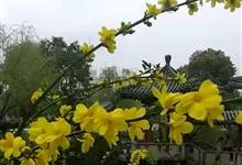 迎春花,木犀科素馨属的多年生木本植物,小枝细长直立或者呈拱形下垂;叶片呈卵形或椭圆形;花单生于叶腋处,苞片呈披针形或椭圆形,花冠为金黄色,花瓣通常为倒卵形或椭圆形;花期在6月。…全部>>